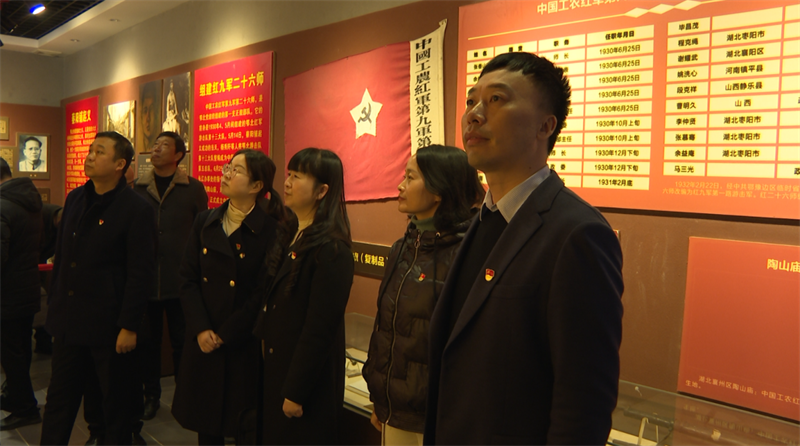 在板橋店鎮(zhèn)新街村,省水利廳河道采砂管理局漢江基地和宜城市水利局的黨員干部們一起,先后參觀了鄂豫邊區(qū)革命紀(jì)念館、紅九軍二十六師領(lǐng)導(dǎo)機(jī)關(guān)辦公室地點(diǎn)之一"舒家洞"和中共鄂豫邊區(qū)臨時(shí)省委、省蘇維埃政府舊址等,學(xué)習(xí)革命烈士不畏強(qiáng)敵、勇于擔(dān)當(dāng)?shù)挠⒂率论E,感悟鄂豫邊優(yōu)秀兒女忠貞不屈、英勇戰(zhàn)斗的革命精神,不斷增強(qiáng)守初心、擔(dān)使命的行動(dòng)自覺(jué)。