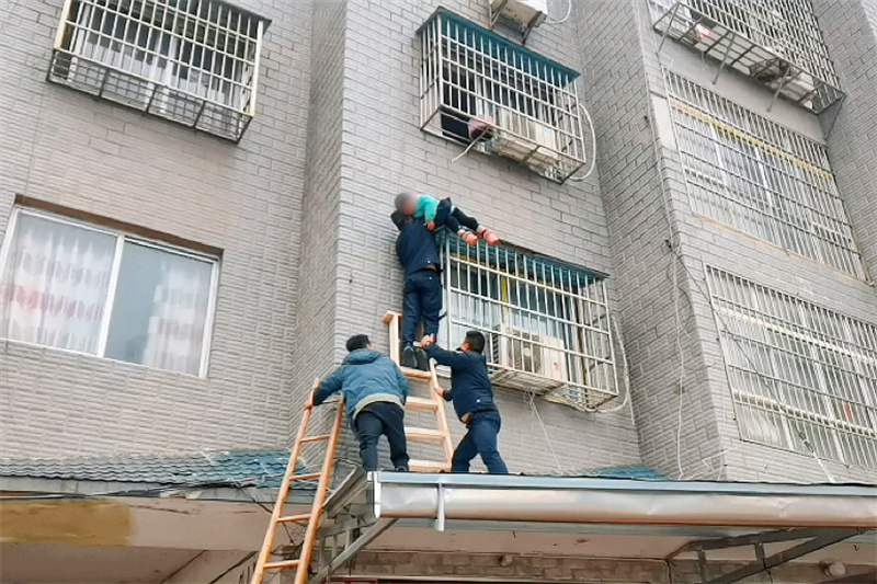接警后,劉猴派出所民輔警立即趕至現(xiàn)場(chǎng),同時(shí)治保主任也向周圍群眾借來(lái)了兩把梯子準(zhǔn)備救援。"奶奶,我下不來(lái)了......"只見(jiàn)瑤瑤坐在二樓的防盜窗頂上哭得撕心裂肺,窗頂距離地面約有七米高,瑤瑤雙腿懸空在外,加之年齡較小,難以預(yù)測(cè)下一步動(dòng)作,如果不小心墜落,后果不堪設(shè)想。