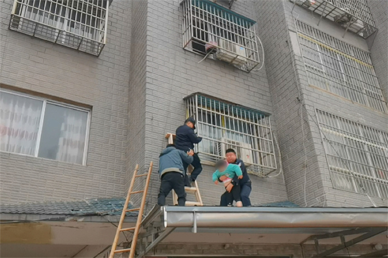 本網(wǎng)訊記者張尚東 通訊員湯潔 杜心怡 陳鑫悅報(bào)道:劉猴鎮(zhèn)一女童瑤瑤(化名)將自己反鎖進(jìn)臥室,爬上陽(yáng)臺(tái)防盜窗玩耍,不慎踩斷一根鋼管跌落在二樓窗戶遮陽(yáng)棚上,有隨時(shí)墜落的危險(xiǎn)。幸好鄰居及時(shí)發(fā)現(xiàn)并聯(lián)系家人報(bào)警,宜城市公安局劉猴派出所民輔警迅速趕赴現(xiàn)場(chǎng),爬上長(zhǎng)梯將瑤瑤成功救下。
