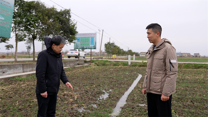 "這兩天下雨后,田里積了很多水,這非常不利于小麥的生長。如果小麥長時間積水的話,會造成麥苗發(fā)黃,甚至死亡,一定要把田里的水給它排出去,這樣才有利于小麥的生長。"12月15日,在鄢城街道木渠村一處麥田里,宜城市農技推廣中心高級農藝師余小清正在幫助種植戶解決小麥越冬過程中遇到的難題,講解冬小麥管理技術要點。