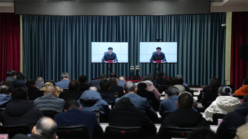 宜城市領(lǐng)導(dǎo)武義泉、李曙東、陳進(jìn)雷等在宜城分會(huì)場(chǎng)參加會(huì)議。