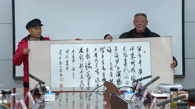 會上進(jìn)行了贈書儀式,各位作家將《春滿楚都》文集贈送給自己撰寫的先進(jìn)人物本人,同時還贈送了相關(guān)雜志和書法卷軸。