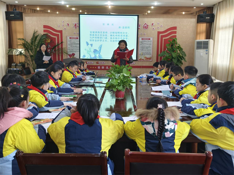 活動(dòng)中,宜城市朗誦協(xié)會(huì)副會(huì)長(zhǎng)肖艷麗帶領(lǐng)孩子們聲情并茂地朗誦了《滄浪歌》、《常林歡》等反映宜城美景的四首古詩詞,讓同學(xué)們沉浸在古宜城美景中留戀忘返。