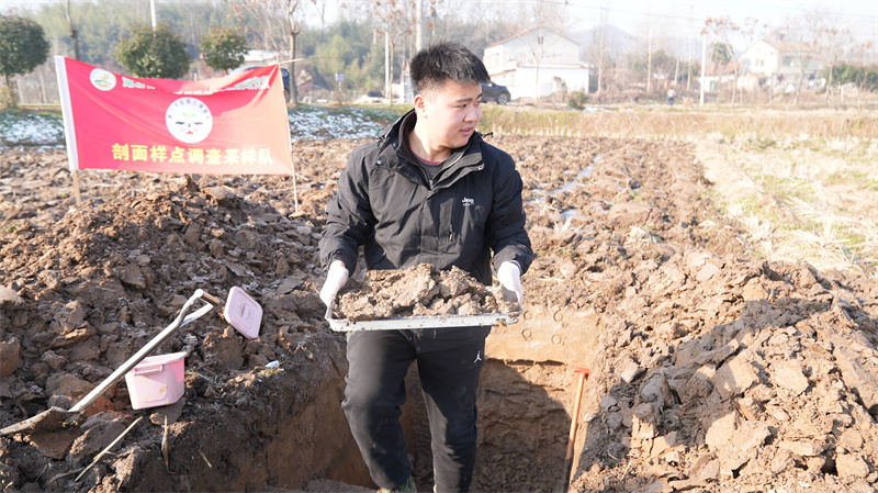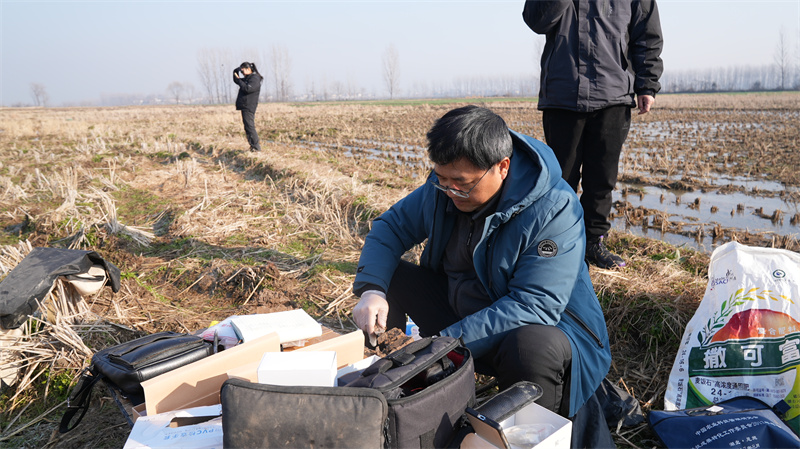 1月25日,記者看到,省農(nóng)科院植保土肥研究所的專家們不畏嚴(yán)寒,一絲不茍地在宜城小河鎮(zhèn)大沖村五組的一塊冬閑田中進(jìn)行土壤采樣。他們通過選擇位置、挖坑剖面、采土裝袋等一系列流程,順利完成了這塊農(nóng)田土壤的采樣“體檢”。