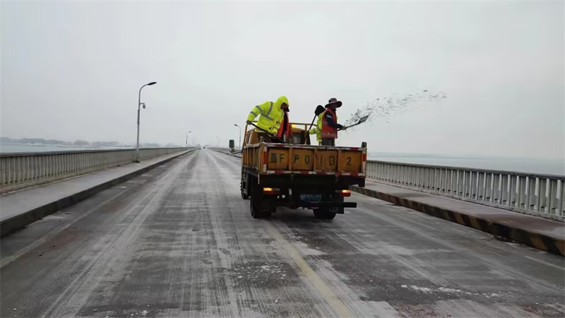 2月1日傍晚,宜城市公路管理局通過(guò)上級(jí)業(yè)務(wù)主管部門(mén)微信公眾號(hào)發(fā)布道路冰凍預(yù)警,并安排各道班人員上路巡邏、并在應(yīng)急車(chē)輛上放置鋼絲繩、融雪劑幫助被困群眾。由于凌晨公路出現(xiàn)結(jié)冰現(xiàn)象,市公路局迅速組織人員上路對(duì)陡坡、橋梁、轉(zhuǎn)彎等易結(jié)冰路段連夜守護(hù),撒鹽除冰,確保道路安全暢通。