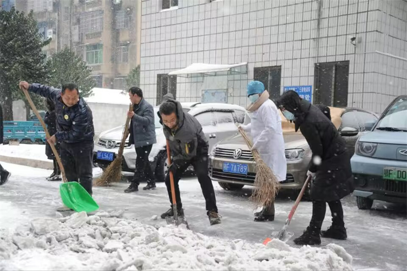 2月4日,筆者在醫(yī)院門診大樓看到,大家不畏嚴(yán)寒,紛紛拿起鐵锨、掃帚等工具,分工合作,相互配合,大家齊心協(xié)力,進(jìn)行掃雪除冰工作。經(jīng)過近兩個(gè)多小時(shí)的共同努力,院內(nèi)道路的積雪全部清理干凈,為前來就診的患者和家屬開通了“暖心通道”,保障了就診病患和醫(yī)護(hù)人員的出行通道順暢、安全。