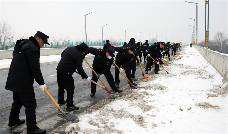 本網(wǎng)訊記者周波 李勤報道:2月4日,宜城市交通運輸局組織兩支搶險應急突擊隊對倚天大橋兩邊的積雪進行清除,全力護航群眾出行。