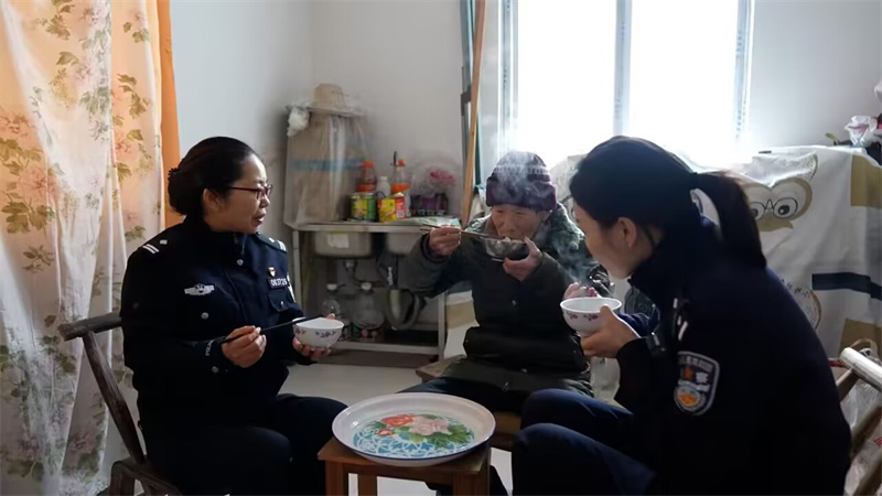 孤寡老人江治英說:“余警官對我很關(guān)心,經(jīng)常過來看我,跟我姑娘一樣,來了以后洗衣裳、洗被子,讓我感到很溫暖。”