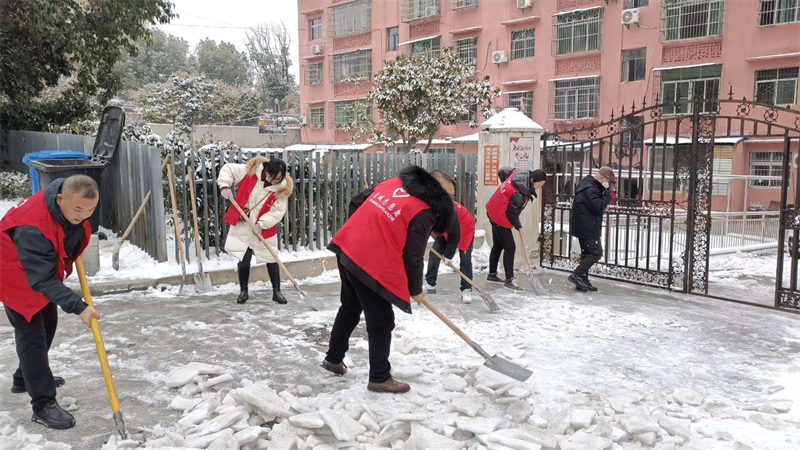 大家分工明確,有的鏟雪,有的掃雪,配合默契,全力清除人員出行必經(jīng)區(qū)域的積雪和暗冰,忙碌的身影為這個冬日增添了暖意。