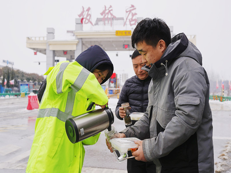 一杯杯熱茶,滿滿的暖意;一份份熱飯,滿滿的暖心,在寒冷的冬日,讓滯留的司乘,多了一份份家的溫馨與感動。