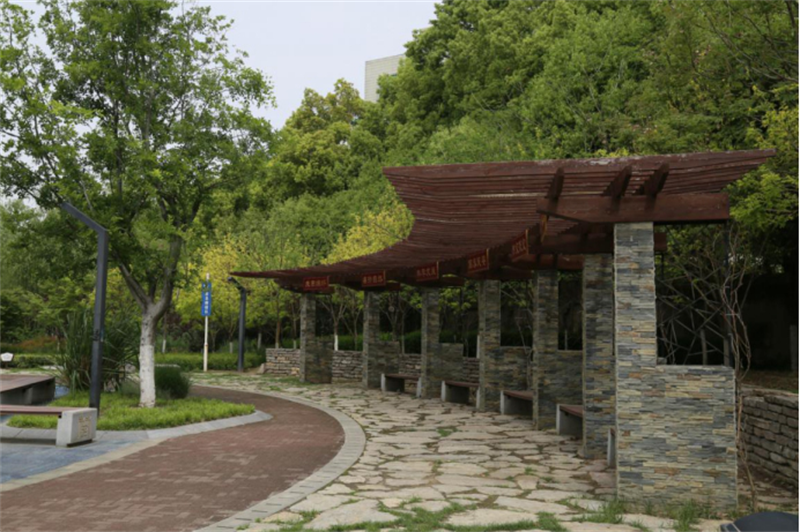 振興游園位于振興大道與宜城大道交匯處,毗鄰市政府機(jī)關(guān)大院,占地面積9000平方米,功能定位為振興大道生態(tài)園營(yíng)造森林氧吧。游園由“動(dòng)態(tài)空間”和“靜態(tài)空間”兩大部分組成,建設(shè)時(shí)融入“海綿城市”的理念,選用本地產(chǎn)片石精心鋪裝;通過(guò)設(shè)置植草溝、小微濕地等景觀形態(tài)解決場(chǎng)地的積水、濾水、排水問(wèn)題。