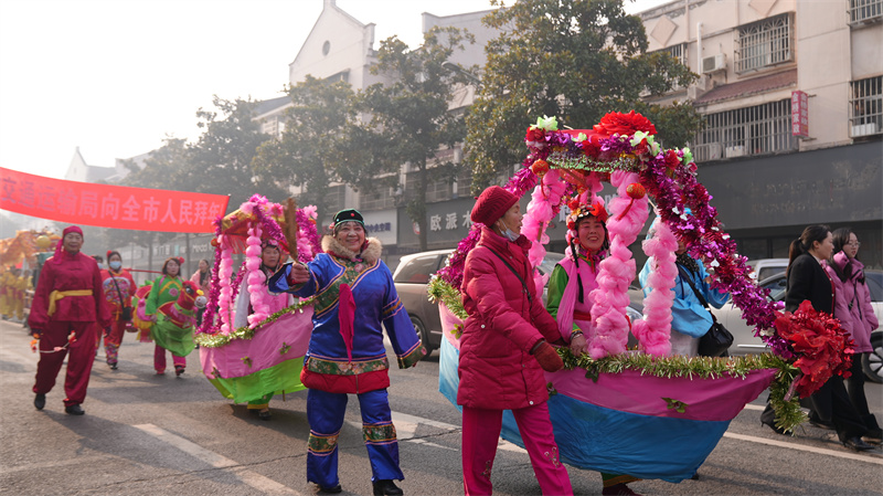 本網(wǎng)訊記者鄔玲玲 謝子恒 通訊員李丹報(bào)道:2月10日是農(nóng)歷正月初一,宜城市"龍騰盛世迎新春 楚風(fēng)漢韻耀楚都"2024年大型春節(jié)民俗巡演活動(dòng)走上街頭,讓廣大市民近距離感受到傳統(tǒng)文化的魅力,豐富全市人民的精神文化生活,為全市人民送上新春的祝福,讓大家過(guò)一個(gè)歡樂(lè)、祥和、文明的新春佳節(jié)。