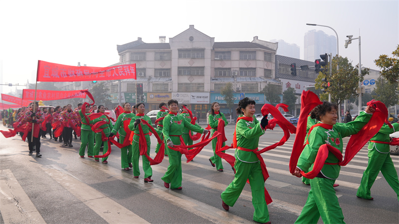 巡演隊(duì)伍沿自忠路——紫陽(yáng)觀路——宜城大道——燕京花苑一路巡演,生動(dòng)展現(xiàn)了楚都宜城傳統(tǒng)和時(shí)尚交相輝映,各項(xiàng)事業(yè)發(fā)展欣欣向榮的美好盛景。