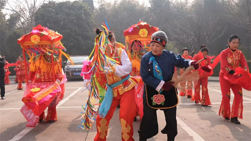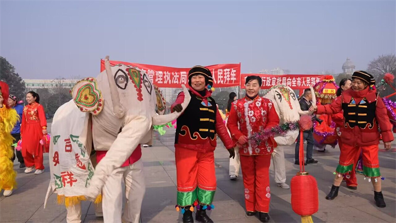 今年是甲辰龍年,舞龍和舞獅是本次巡演的必備元素,象征著吉祥和力量,寄托著人民對(duì)新一年的美好祝愿;腰鼓的節(jié)奏明快激昂,秧歌的舞姿輕盈歡快,展現(xiàn)出楚都兒女的激情與活力;打連廂、旱船、蚌殼等傳統(tǒng)節(jié)目生動(dòng)地再現(xiàn)了古代勞動(dòng)人民的生產(chǎn)生活場(chǎng)景;趕犟驢、彩帶龍、麒麟送子、老背少等非遺節(jié)目則因其濃郁的地方特色和對(duì)生活的美好寓意,更受廣大觀眾喜愛(ài)。
