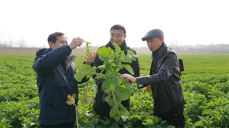 “生長(zhǎng)比較旺盛,是旺長(zhǎng)性的,產(chǎn)生了凍害,這個(gè)主莖凍炸裂了,再次降溫,如果劇烈了以后,也容易加重凍害!2月18日,農(nóng)技專家走進(jìn)田間地頭,查看小麥和油菜的長(zhǎng)勢(shì),了解田間管理情況,并針對(duì)當(dāng)前農(nóng)作物的長(zhǎng)勢(shì)情況,對(duì)下一步管護(hù)進(jìn)行“支招”,有效防范新一輪寒潮低溫天氣對(duì)農(nóng)作物造成的影響。