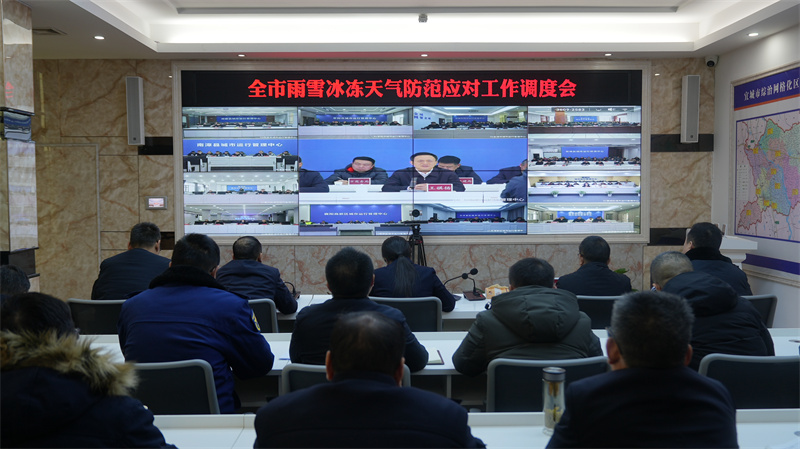 在宜城市城市運(yùn)行管理中心,肖平詳細(xì)了解應(yīng)急、交通、民政、教育、供水、供電、燃?xì)獾葐挝缓筒块T針對本輪雨雪冰凍天氣應(yīng)對措施、工作開展情況,以及當(dāng)前全市道路、橋梁等除雪除冰和通行情況。