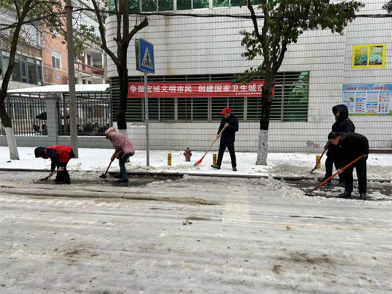 各部門各單位全力以赴,第一時間開展鏟雪除冰作業(yè),按照“門前三!必熑畏秶,主動清掃積雪,確保道路安全通暢。他們不畏嚴寒,齊心協(xié)力,共同守護著市民的安全出行通道。