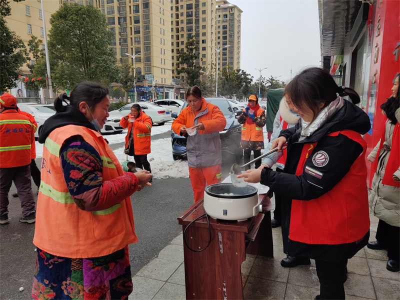 當(dāng)天上午,在喬家營社區(qū)工會(huì)驛站、學(xué)苑社區(qū)工會(huì)驛站、餓了么工會(huì)驛站、宜城愛心粥鋪等地,一陣陣熱氣騰騰的湯圓香味撲面而來。來自宜城市總工會(huì)的干部職工現(xiàn)場制作湯圓,并為環(huán)衛(wèi)工人、外賣騎手、公安民警等新業(yè)態(tài)就業(yè)群體及一線戶外勞動(dòng)者送上一碗碗香甜的湯圓,以及元宵佳節(jié)的問候和祝福。