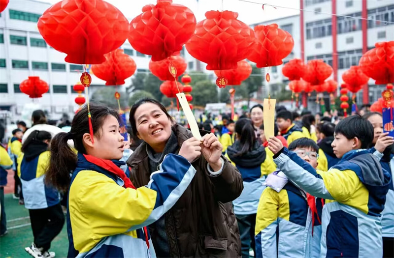 本網訊通訊員杜遵剛報道:2月26日,宜城市南街小學為全校師生奉上了一場融合春節(jié)廟會、滿載幸福年味的高品質傳統(tǒng)文化盛宴。該校近3000名學生分年級到操場各個攤位親身體驗豐富又好玩的傳統(tǒng)文化項目。
