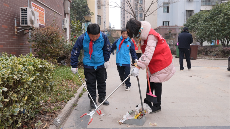 活動中,宜城市公共資源交易中心、紫陽觀社區(qū)的志愿者們與龍頭村小學(xué)的60多名小學(xué)生志愿者們不懼寒冷,熱情高漲,有序地對小區(qū)進(jìn)行全面清掃,清理衛(wèi)生死角,并將廢棄的袋子、果皮、煙頭、紙屑等垃圾清理干凈,為居民營造干凈整潔、井然有序、文明和諧的優(yōu)美環(huán)境,同時向小區(qū)居民宣傳創(chuàng)衛(wèi)知識。