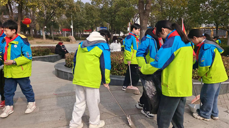 啟動儀式結(jié)束后,教師志愿者帶領(lǐng)學(xué)生們走出校門,手持垃圾袋和抹布前往楚都公園。在公園里,學(xué)生志愿者們有的用抹布擦拭公園的健身器材、有的用掃帚打掃地上的垃圾、有的將亂停的電動車擺放整齊。小小志愿者們不怕臟、不怕累的行事作風(fēng),贏得了環(huán)衛(wèi)阿姨和路人們的一致好評。