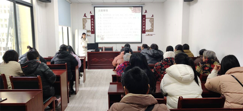 講座中,主講老師詳細(xì)解讀了“兩癌”的發(fā)病原因、高危因素、早期癥狀以及篩查方法等關(guān)鍵信息,并強調(diào)了定期體檢和及時接種HPV疫苗的重要性,結(jié)合自身實際講授自我檢查知識。此外,工作人員為現(xiàn)場聽眾發(fā)放了圍裙、洗手液等宣傳用品,提前送去婦女節(jié)的祝福。