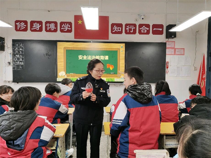 報(bào)道:為加強(qiáng)毒品預(yù)防教育,護(hù)航青少年健康成長,筑牢健康無毒的校園防線。3月6日,鄢城派出所聯(lián)合鄢城辦事處戒毒康復(fù)中心在宜城市漢江中學(xué)舉辦了一場別開生面的安全法治教育課。