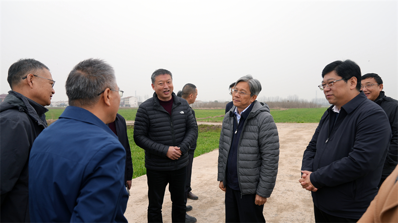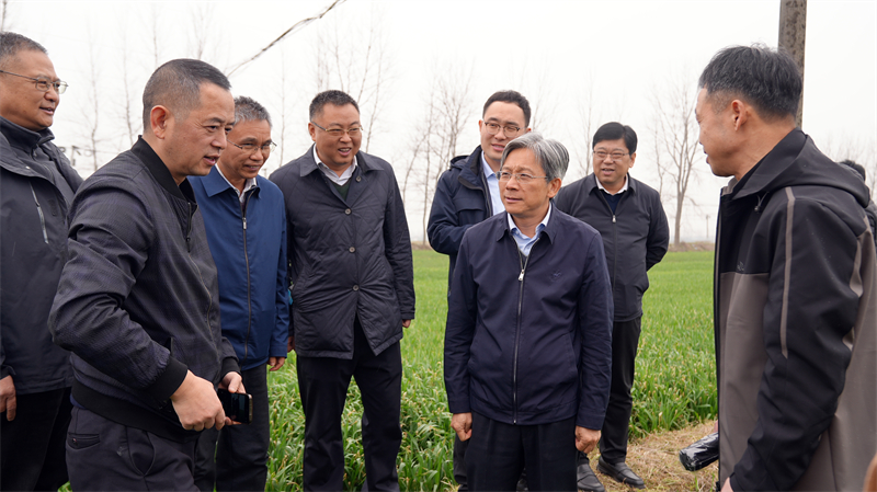 朱恩林一行先來到鄭集鎮(zhèn)童梅村,走進田間地頭去了解該地前期凍雨和降雪天氣對小麥的影響以及長勢情況,聽取相關(guān)負責(zé)人關(guān)于病蟲害發(fā)生和防治方面的介紹,同時對小麥統(tǒng)防統(tǒng)治工作提出指導(dǎo)意見。