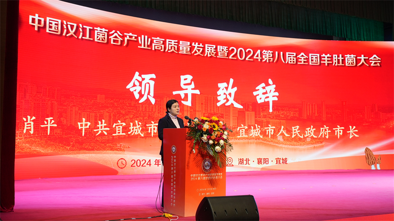 宜城市委副書記、市長肖平致辭,她指出,近年來,宜城市聚焦產(chǎn)業(yè)發(fā)展需求,組建鏈?zhǔn)綄<曳⻊?wù)團(tuán)隊(duì),以揭榜制項(xiàng)目為抓手,推動解決菌種選育、高效種植、精深加工等一批制約產(chǎn)業(yè)發(fā)展的突出技術(shù)難題,探索“一網(wǎng)兩棚三膜”設(shè)施栽培技術(shù),顯著提升科技創(chuàng)新和成果轉(zhuǎn)化水平。下一步,宜城市將繼續(xù)加大對食用菌產(chǎn)業(yè)的支持力度,推動產(chǎn)業(yè)集聚、升級和拓展,力爭實(shí)現(xiàn)食用菌產(chǎn)業(yè)種植、加工“雙百億”的戰(zhàn)略目標(biāo),努力打造全國羊肚菌生產(chǎn)基地和集散中心。