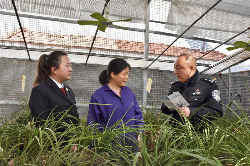 在流水鎮(zhèn)謳樂(lè)社區(qū)蘭花種植戶(hù)家里,警方聯(lián)合檢察院干警向種植戶(hù)普及蘭屬植物保護(hù)政策和種苗管理法規(guī),并分發(fā)環(huán)境資源保護(hù)宣傳手冊(cè),進(jìn)一步增強(qiáng)了農(nóng)戶(hù)的合法合規(guī)經(jīng)營(yíng)意識(shí)。