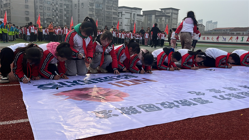 宣誓結(jié)束后,學(xué)生們紛紛在橫幅上簽下名字,表達(dá)對反欺凌行動的堅定支持和積極參與,鄭重承諾從自身做起,與人為善,文明禮貌,遵規(guī)守紀(jì),不做校園欺凌者。