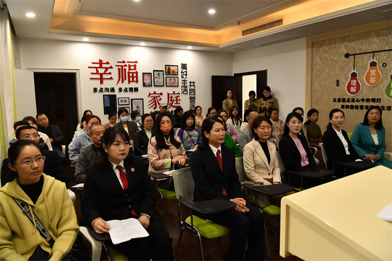 在法院幸福家庭學校舉行的第二場講座中,家事庭法官助理高文慧通過真實案例講述了關(guān)注孩子心理健康的重要性;劉紅萍博士分析了當下未成年人出現(xiàn)心理問題的原因,從成因分析和科學教養(yǎng)方式的引導,喚醒特殊家庭、留守家庭對科學家庭教育的重視和正家風、吹和風的決心。