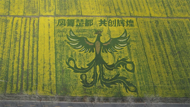 報道:隨著清明假期的臨近,宜城市鄭集鎮(zhèn)迎來了萬畝油菜花的盛花期。這片金黃的海洋吸引了眾多市民前來打卡游玩,其中一只由七彩油菜花組成的“楚鳳”展翅欲飛,象征著大美宜城“豐”景的壯麗開篇。