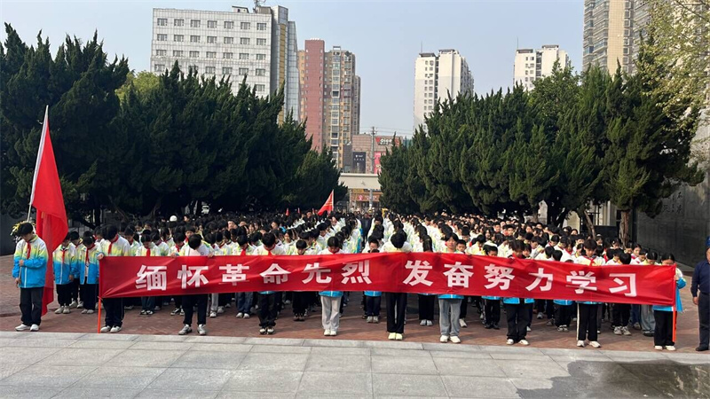 在烈士紀(jì)念碑前,少先隊(duì)員們胸戴紅領(lǐng)巾整齊列陣,氣氛莊嚴(yán),通過齊唱國(guó)歌,重溫入隊(duì)誓詞,瞻仰紀(jì)念碑、默哀等形式,表達(dá)出對(duì)革命烈士的不盡哀思與崇敬。
