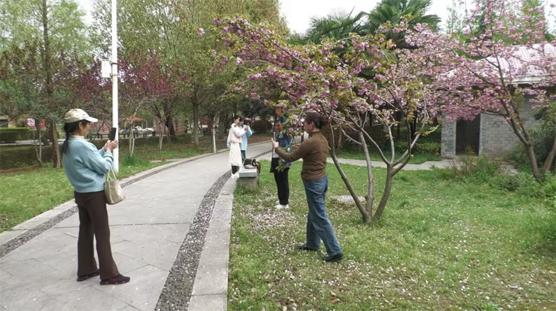 春日回暖,來公園運動健身的市民也多了起來。在廣場上舞龍彩帶的劉阿姨介紹到:“每天早上都會來公園這里鍛煉健身,一邊聞著花香,一邊運動出汗,特別開心自在!