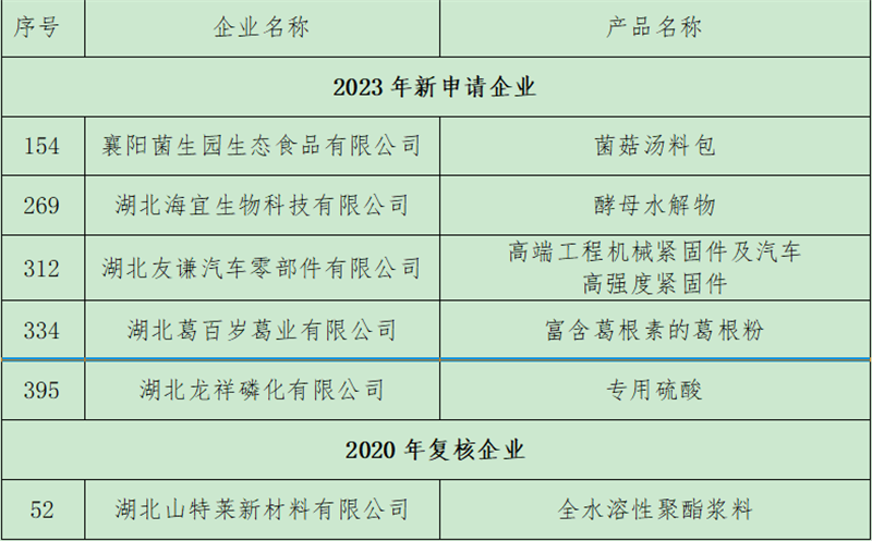 本網(wǎng)訊通訊員高文報道:近日,省經(jīng)信廳公示了2023年度湖北省制造業(yè)單項冠軍企業(yè)名單,宜城6家企業(yè)榜上有名,其中1家復(fù)審企業(yè),5家新申報企業(yè)。至此,全市省級制造業(yè)單項冠軍企業(yè)(產(chǎn)品)總數(shù)增至12家,涵蓋裝備制造、農(nóng)產(chǎn)品、紡織服裝、精細化工、新能源新材料等多個行業(yè)。