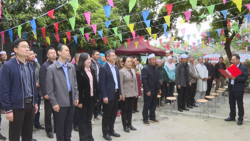 報(bào)道:4月10日是伊斯蘭教傳統(tǒng)節(jié)日開齋節(jié)。當(dāng)天,宜城市委常委、統(tǒng)戰(zhàn)部部長周斌帶隊(duì)到鄢城清真寺看望慰問伊斯蘭教界人士,向全市穆斯林群眾致以節(jié)日的祝賀,并同穆斯林群眾一起舉行了升國旗儀式。