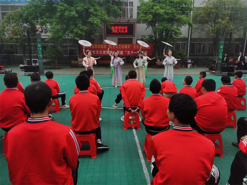 演員們?yōu)樘厥饨逃龑W校的孩子們帶來了豐富多彩的文藝節(jié)目,表演唱《楚地風情》、把子功展示《單刀槍》、曲劇表演唱《劉秀還鄉(xiāng)》選段、獨唱《戲曲串燒》、二胡演奏《新賽馬》、花鼓小戲《統(tǒng)老爺看稞》等節(jié)目悉數(shù)登場,為孩子們呈現(xiàn)了一場文化饕餮盛宴。