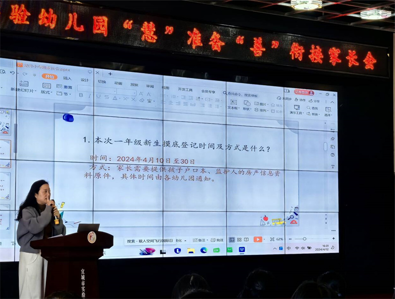 會上,實驗幼兒園副園長邱艷萍對宜城市2024年幼升小招生政策進(jìn)行了詳細(xì)的闡述和解讀。特別強調(diào)了本年度政策與往年的差異和調(diào)整,涵蓋了報名對象、條件、劃分依據(jù)、所需材料、日程安排以及表格填寫等多個方面,并耐心細(xì)致地一一回答家長的提問,讓家長們更加清晰政策內(nèi)容,為接下來的材料準(zhǔn)備和時間規(guī)劃提供了明確指導(dǎo)。 此次會議將進(jìn)一步推動家、園、!坝仔°暯渔湣钡臉(gòu)建,發(fā)揮好"三重奏"的作用,實現(xiàn)幼升小有效銜接。