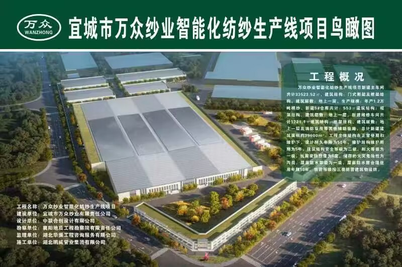 據(jù)了解,宜城市萬眾紗業(yè)有限責任公司是2000年改制成立的民營有限責任公司,總占地面積300畝。 2022年,公司為加快技術(shù)創(chuàng)新,產(chǎn)品高端多樣化,實現(xiàn)高質(zhì)量發(fā)展,收購土地110畝,計劃投資5億元建設第三期高智能化紡紗工廠項目。項目新建主生產(chǎn)車間33523.52㎡、新建維修車間1171.4㎡,預計年產(chǎn)高端棉紗1.2萬噸。
