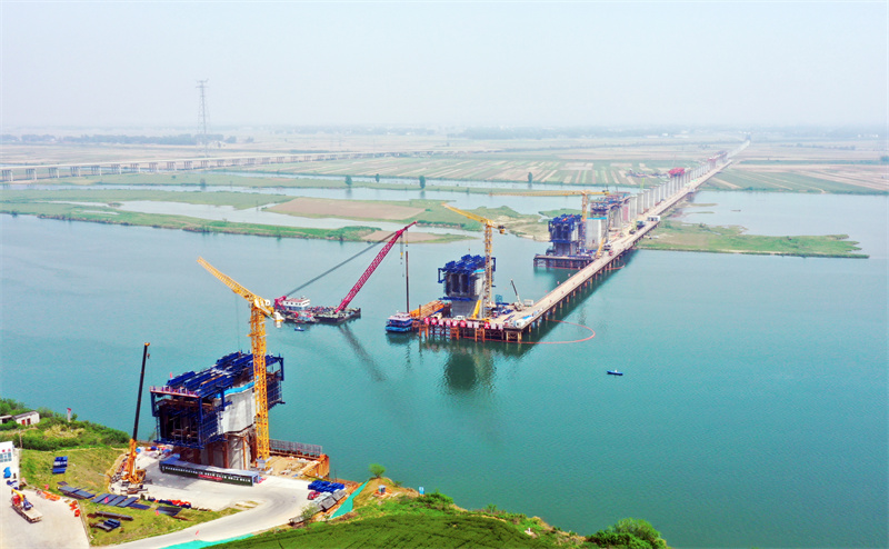 襄荊高鐵漢江特大橋建設(shè)進入造橋機拼裝施工階段