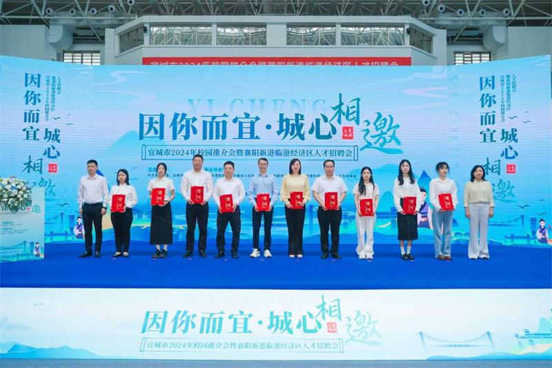 本次活動(dòng)還聘請(qǐng)了在校的宜城籍教師、學(xué)生和企業(yè)家代表為招才大使,宜城市領(lǐng)導(dǎo)王海、陳珊為招才大使頒發(fā)聘書(shū),希望各位招才大使能夠積極宣傳家鄉(xiāng),搭建宜城與人才之間的橋梁,共促宜城繁榮發(fā)展。