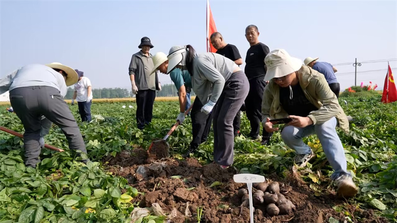 “從今天收獲來(lái)看,馬鈴薯長(zhǎng)勢(shì)喜人,美人眼和紫色土豆每畝均在6000斤以上,目前市場(chǎng)上這兩個(gè)品種銷售價(jià)格均在2.5元/斤以上,每畝效益按照當(dāng)前產(chǎn)量來(lái)算,能夠達(dá)到15000元左右,遠(yuǎn)超我們市場(chǎng)上銷售的普通馬鈴薯!币顺鞘修r(nóng)業(yè)技術(shù)推廣中心種植業(yè)股負(fù)責(zé)人徐軍說(shuō)。