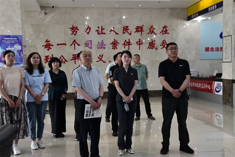 在鄭集法庭,考察團一行與相關(guān)負責人交談,詳細了解宜城市人民法院關(guān)于楓橋式人民法庭創(chuàng)建工作情況。在宜城市人民法院,考察團一行參觀了立案大廳和家事少年維權(quán)中心,并觀看了宜城市人民法院宣傳片《我們是新時代人民法官》《家長里短 風(fēng)雨兼程》,進一步了解宜城法院有關(guān)工作情況。