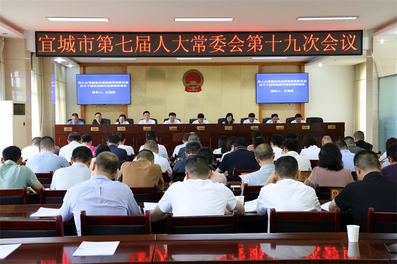 會(huì)議審議市人大常委會(huì)主任會(huì)議關(guān)于提請(qǐng)接受付青峰等同志辭職請(qǐng)求的議案;聽(tīng)取和審議市人大常委會(huì)代表資格審查委員會(huì)關(guān)于個(gè)別代表的代表資格的報(bào)告;表決通過(guò)了有關(guān)人事任免事項(xiàng),向新任命人員頒發(fā)任命書,F(xiàn)場(chǎng)奏唱國(guó)歌,舉行憲法宣誓儀式。