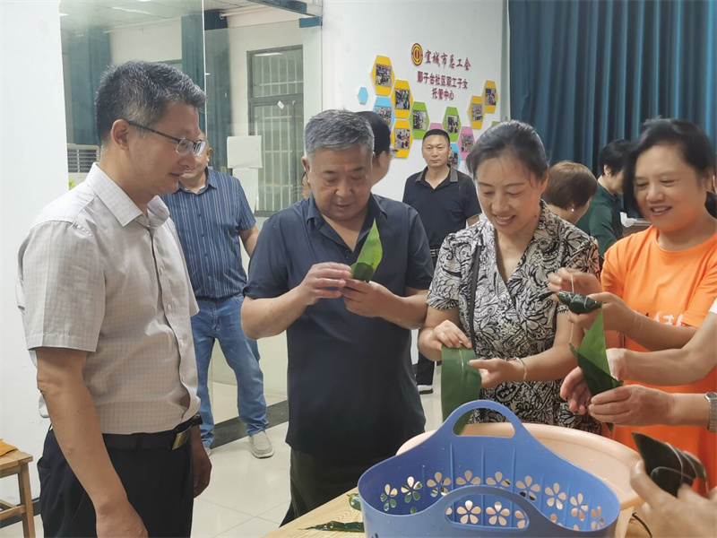 在郾子臺(tái)社區(qū)居民服務(wù)中心,正逢社區(qū)開展“民族團(tuán)結(jié)一家親 萬粽一心總是情”的各族群眾包粽子活動(dòng),周斌一行深入其中,與各族群眾一起動(dòng)手包粽子,并向群眾送上真誠的節(jié)日祝福。