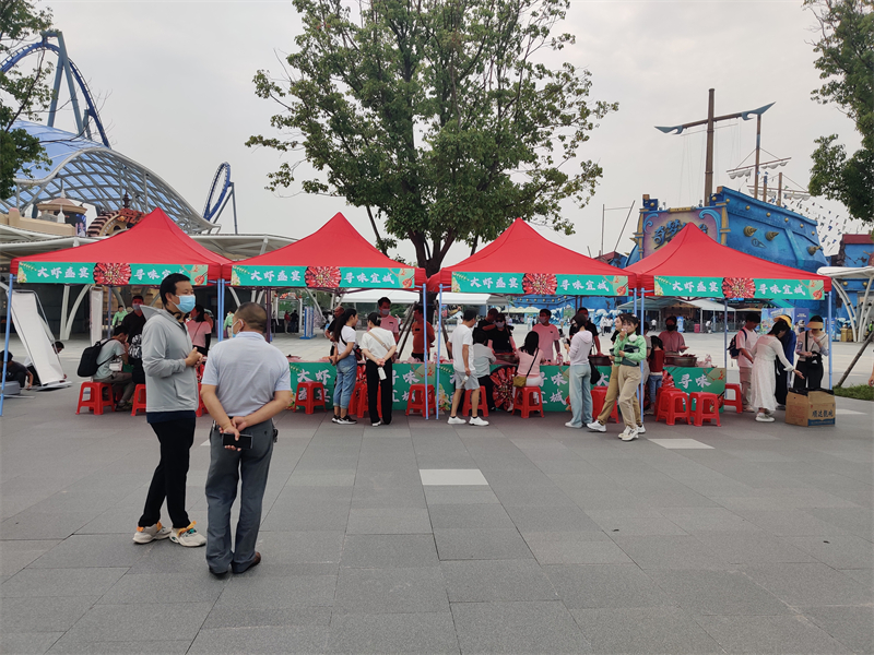 當(dāng)天上午,市文旅局在華僑城景區(qū)搭建展臺、設(shè)置易拉寶,幾百斤誘人的宜城大蝦留住了游客的腳步。大家循味而來,品嘗舌尖上的美味,流連忘返。