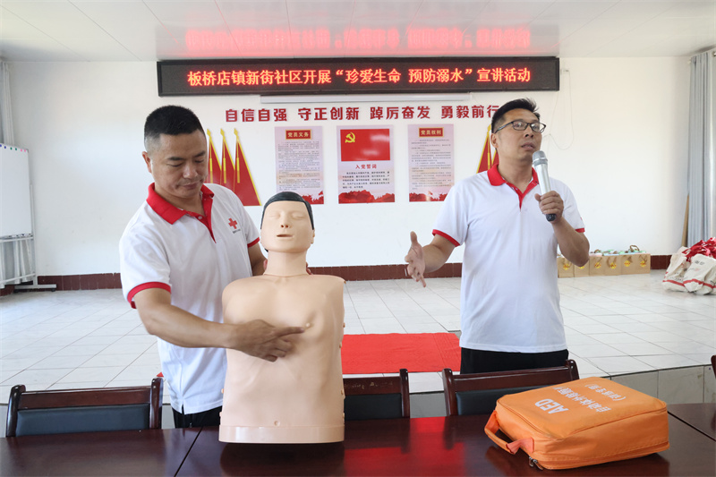 開(kāi)班儀式上,百姓宣講員以“珍愛(ài)生命,預(yù)防溺水”為主題進(jìn)行了生動(dòng)宣講,并宣讀了《板橋店鎮(zhèn)關(guān)于防溺水致全鎮(zhèn)人民群眾的一封信》。隨后,市紅十字會(huì)的專業(yè)人員現(xiàn)場(chǎng)演示了溺水救援的正確方法,教導(dǎo)孩子們?cè)诰o急情況下如何實(shí)施初步的救助措施,如何使用人工呼吸等實(shí)用性知識(shí);顒(dòng)中,市總工會(huì)還為小朋友們送上文具套餐禮盒。