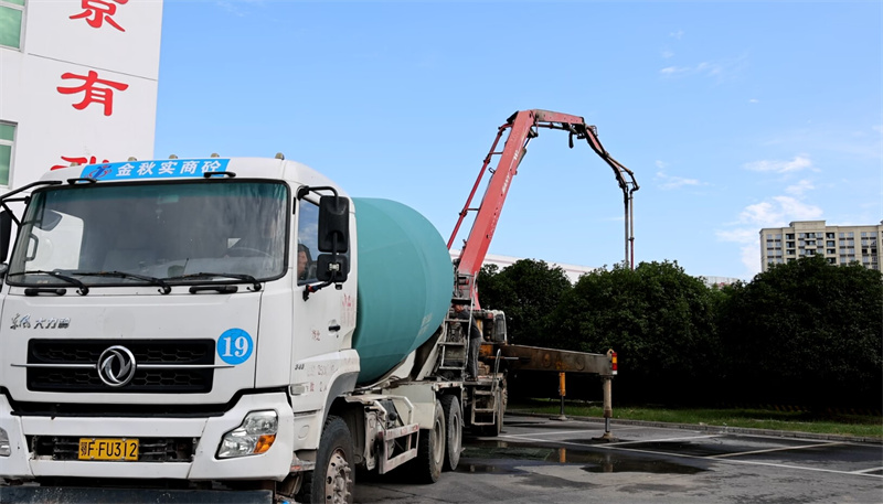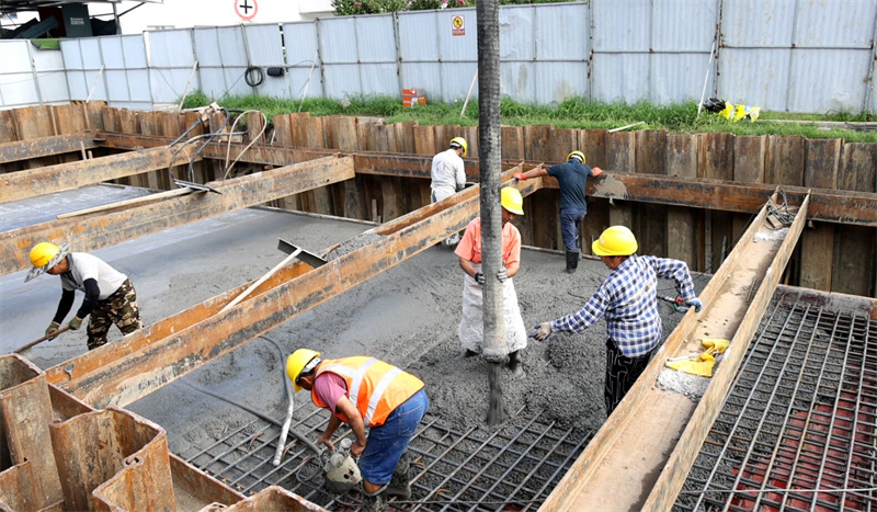 本網(wǎng)訊記者李勤 通訊員李志國報道:7月29日,走進熱辣滾燙的野雞城溝燕京啤酒廠段整治施工現(xiàn)場,混凝土泵車發(fā)出沉悶的振動聲,長長的混凝土輸送臂從藍天白云間垂下,站在如“鐵板燒”一樣的鋼筋墊層上,數(shù)名工人正在加快澆筑混凝土。