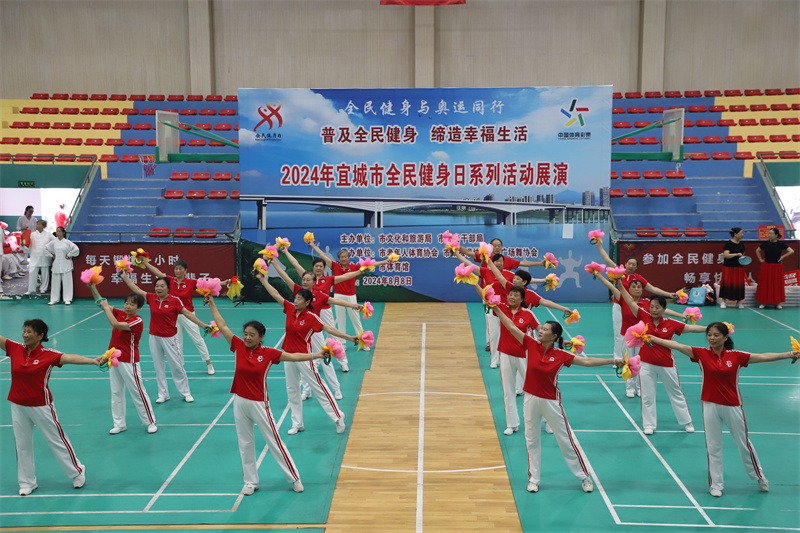 本網(wǎng)訊記者鄭潘報(bào)道:夏日炎炎,全民健身熱情不減。為慶祝全國第16個(gè)“全民健身日”,8月8日,宜城市“全民健身日”系列活動(dòng)展演在市體育館展開。
